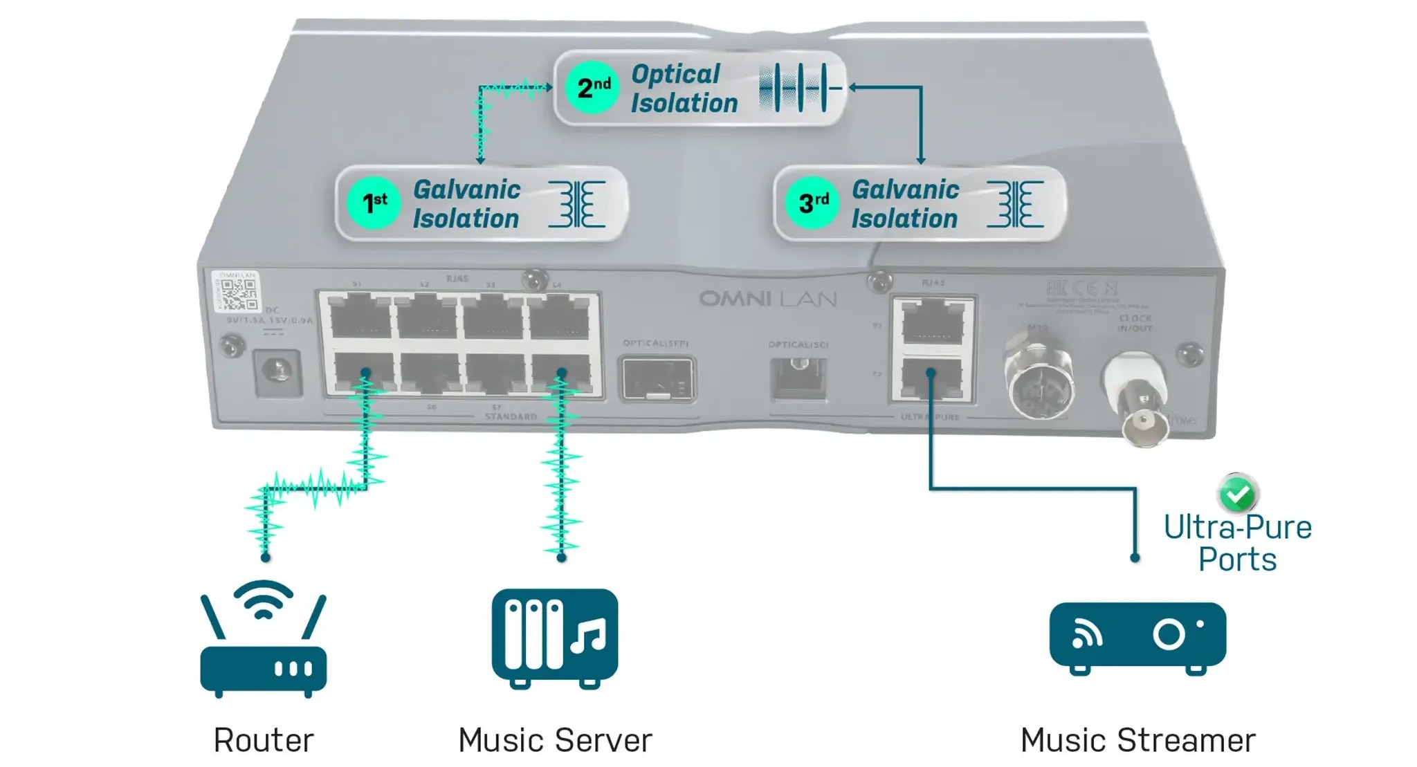 Standart BT anahtarları, sinyal saflığından ziyade veri aktarımını önceliklendirir ve bu da genellikle istenmeyen parazitlere neden olur. OMNI LAN, optik galvanik koruma da dahil olmak üzere üç aşamalı izolasyonla bunu ortadan kaldırarak, en etkileyici dinleme deneyimi için ultra temiz bir iletim yolu sağlar.