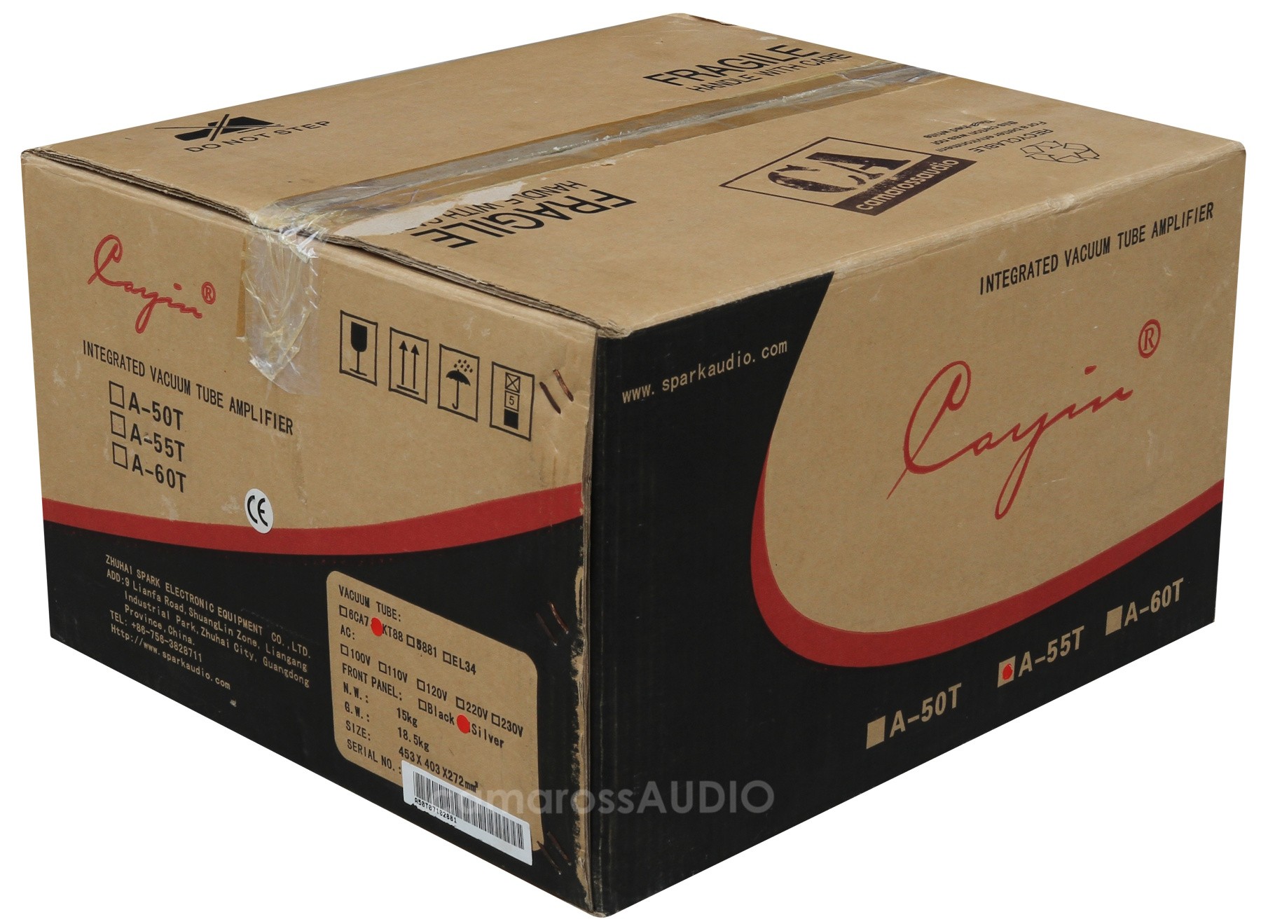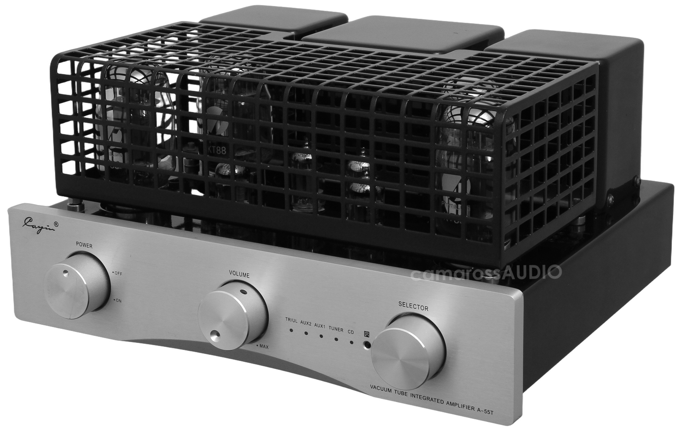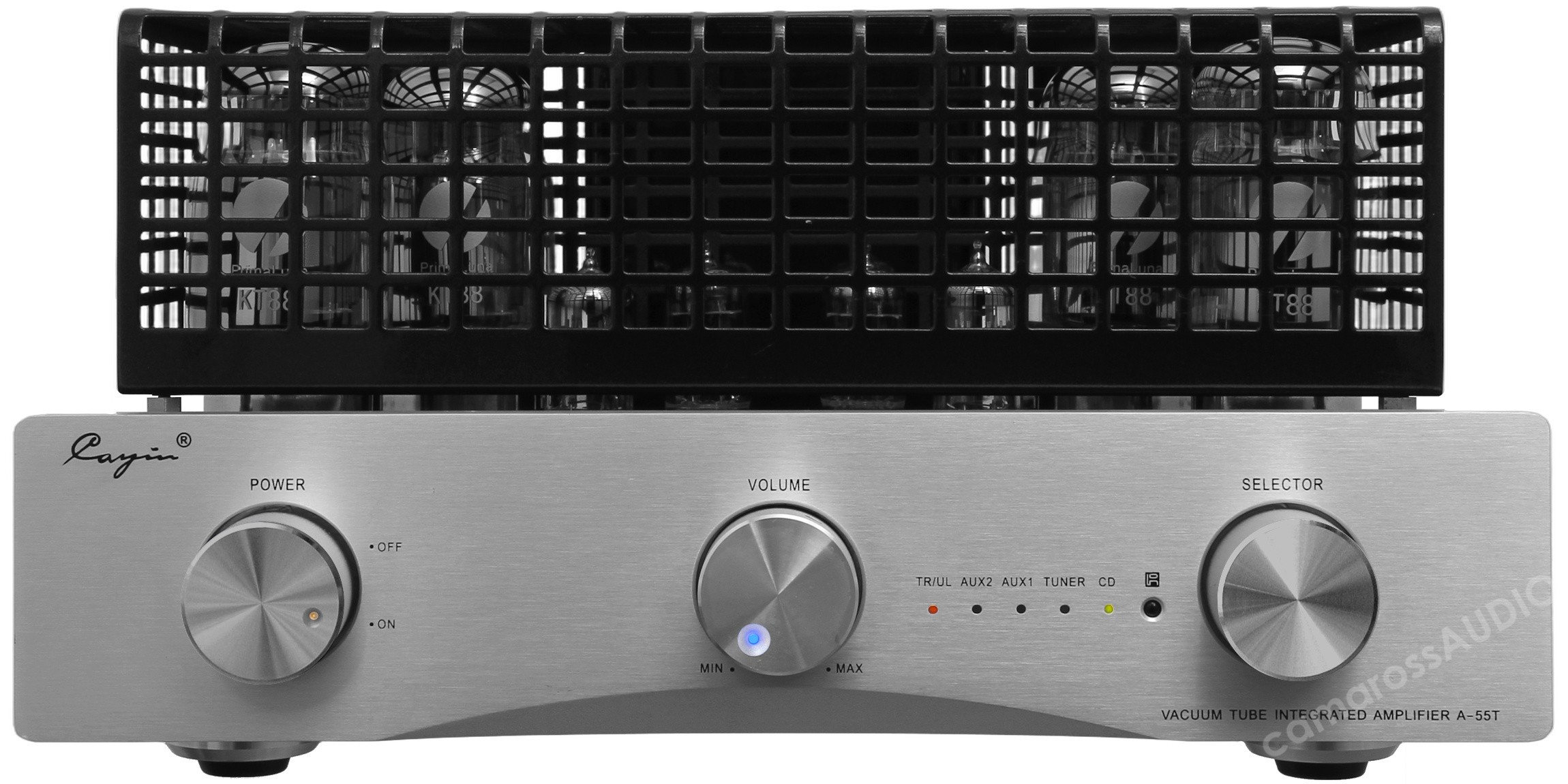 Cayin Audio A-55T, Sınıf AB1 İtme Çekme Amplifikasyonu için dört adet KT88 Çıkış Tüpü kullanır (A-50T EL34 tüpleri kullanır, tüp tipi A-50T ve A-55T modelleri arasındaki tek farktır, tüm şasiler A-50T olarak işaretlenmiştir). İç ve dış işçilik birinci sınıftır. Torodial güç trafosu ve EI çıkış trafoları, Cayin A-55T için özel olarak tasarlanmış ve üretilmiştir. Benzersiz Yumuşak Başlatma devresi, lamba ömrünü uzatmaya yardımcı olur (genellikle 3000 saat!). Çıkarılabilir kafes istediğiniz zaman takılıp çıkarılabilir.