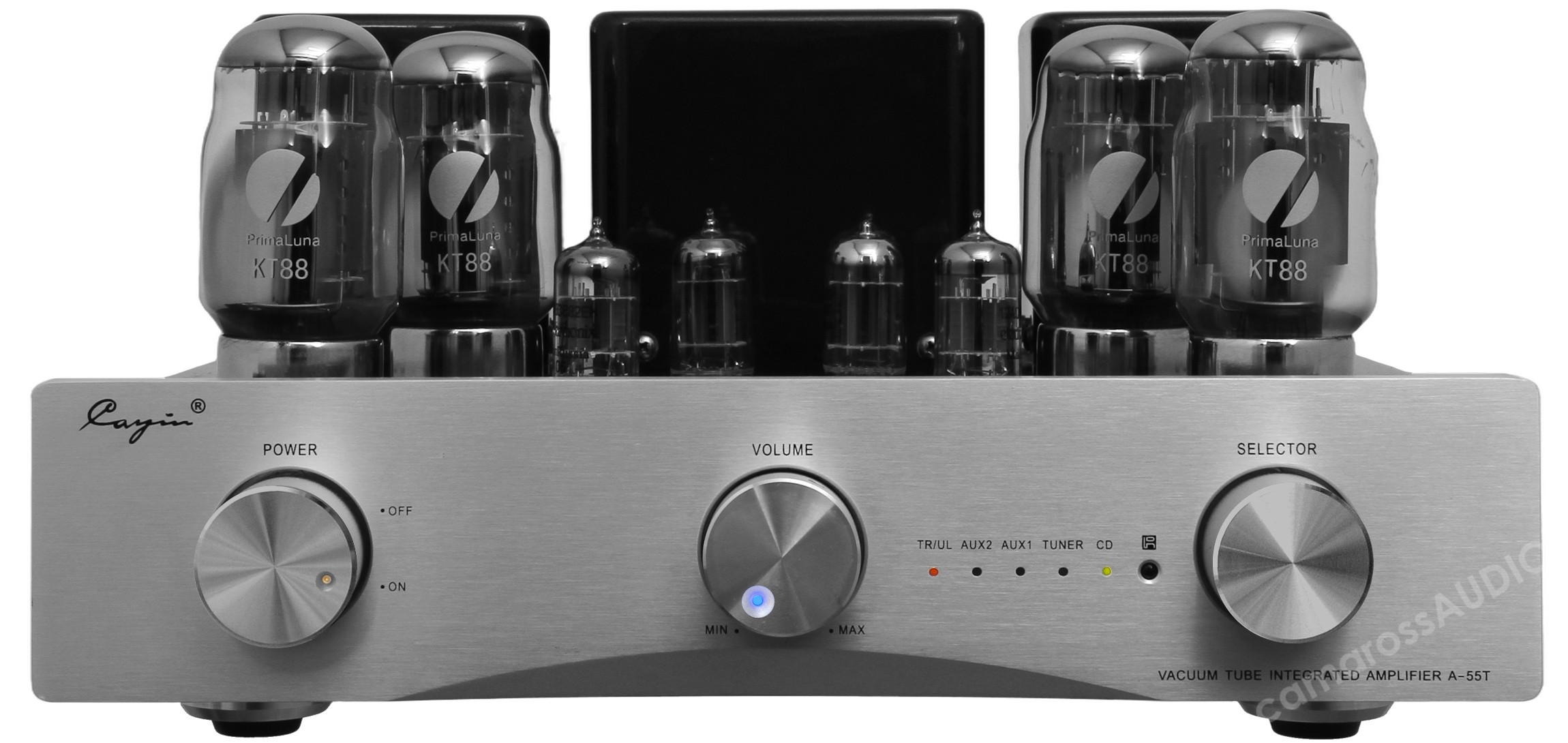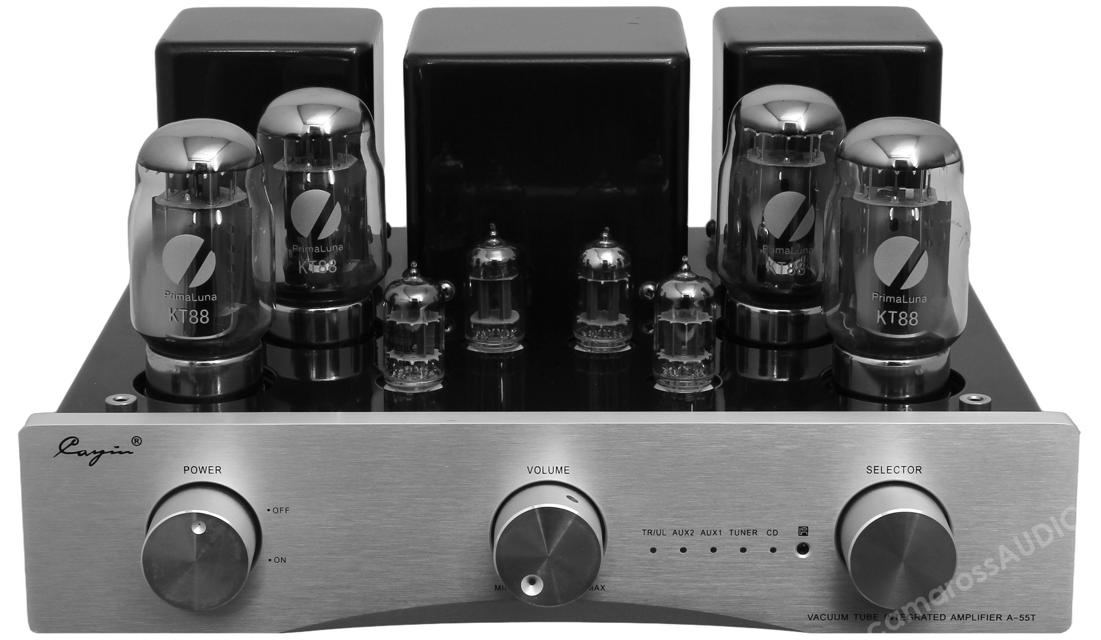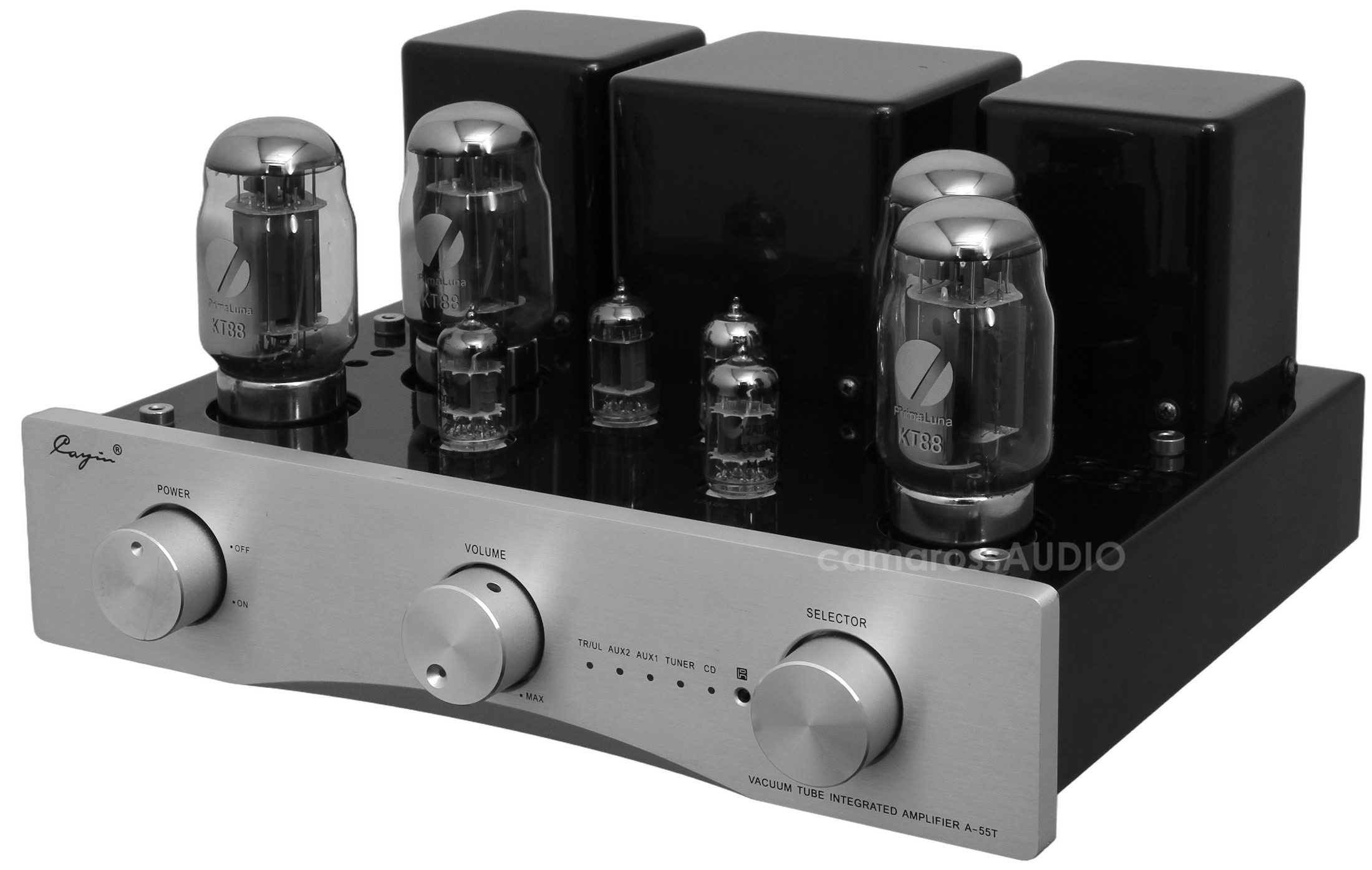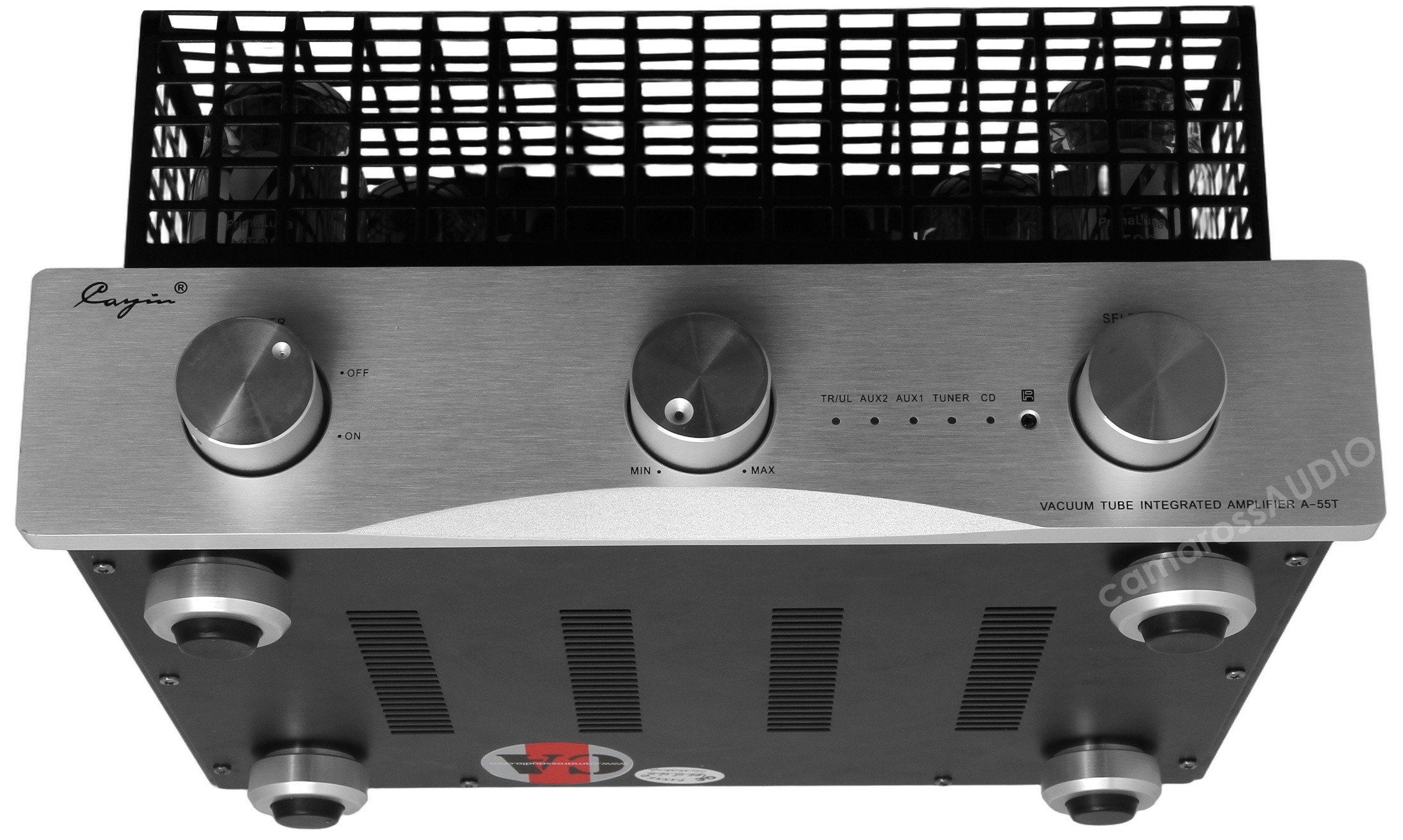 Cayin Audio A-55T, Sınıf AB1 İtme Çekme Amplifikasyonu için dört adet KT88 Çıkış Tüpü kullanır (A-50T EL34 tüpleri kullanır, tüp tipi A-50T ve A-55T modelleri arasındaki tek farktır, tüm şasiler A-50T olarak işaretlenmiştir). İç ve dış işçilik birinci sınıftır. Torodial güç trafosu ve EI çıkış trafoları, Cayin A-55T için özel olarak tasarlanmış ve üretilmiştir. Benzersiz Yumuşak Başlatma devresi, lamba ömrünü uzatmaya yardımcı olur (genellikle 3000 saat!). Çıkarılabilir kafes istediğiniz zaman takılıp çıkarılabilir.