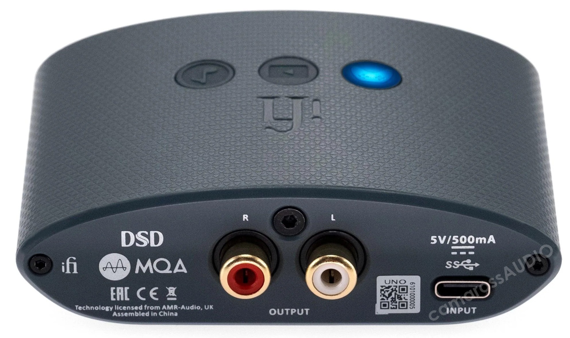iFi Uno, PCM 32bit/384kHz, yerel DSD256 ve MQA dahil olmak üzere yüksek çözünürlüklü ses formatlarını destekler.