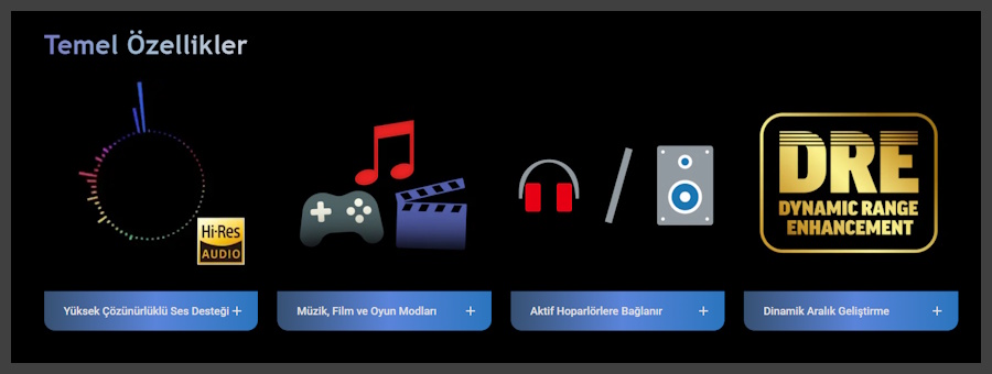 En küçük masaüstü DAC'ımız, her türlü standart masaüstü bilgisayar kurulumunu yükselterek, en sevdiğiniz sese hak ettiği güç ve netliği kazandırırken, film, müzik ve oyun için özel EQ modları da sunar.