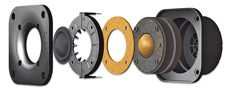orta bas hoparlörü: 1 x 180 mm, Curv polipropilen koni, tweeter: 26 mm, ipek kubbe