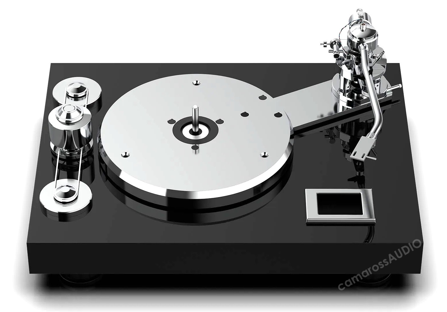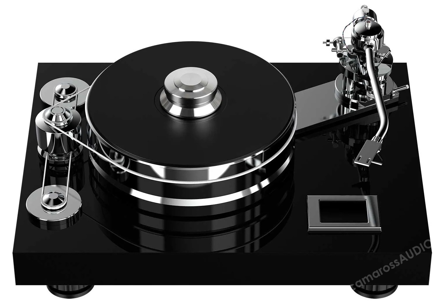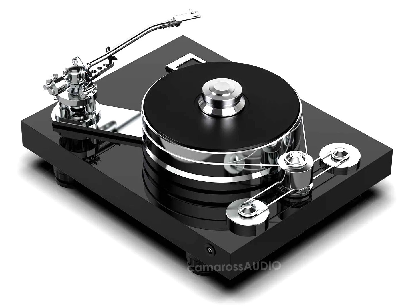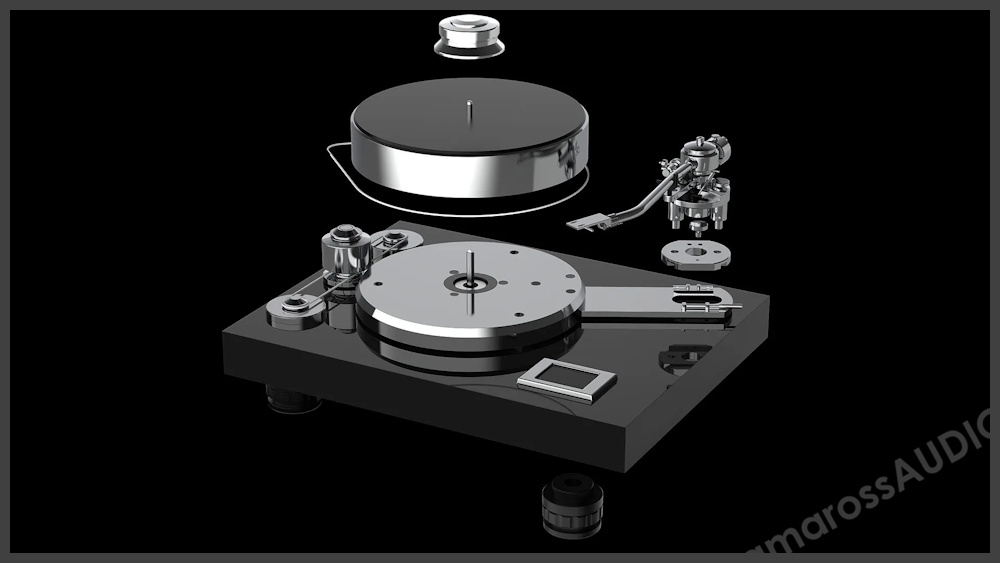 Ana kaide, yüksek kütleli TPE sönümlemeli tabladan bağımsız ancak onu çalıştıran iki motorlu kayış tahrikli bir volan sistemini destekler. Ana kaide ayrıca, tüm çalışma parametrelerinin kontrolünü ve son derece hassas hız ayarını sağlayan dokunmatik ekranı da barındırır. Alt şasi, işlenmiş alüminyumdan yapılmıştır ve tablanın altında bulunur. Tablanın manyetik süspansiyonunu desteklemekten sorumludur. TPE "yastıklar" tüm düzeneği izole eder ve istenmeyen rahatsızlık ve titreşimi daha da azaltır. Volan kayış tahrik sistemi iki motor kullanır ve tüm hareketli parçalar için titreşimsiz ve gürültüsüz mekanik çalışma sağlar. Gelişmiş tek mafsallı 12 inçlik ton kolu, geniş ayar seçenekleri ve bir dizi karşı ağırlık (dahil) sayesinde neredeyse tüm kartuşlara uyum sağlayabilir. VTA ayarı çok kolaydır ve dinlerken yapılabilir!