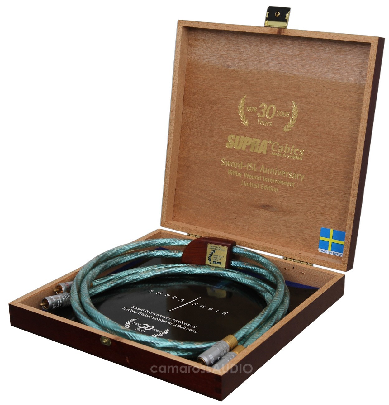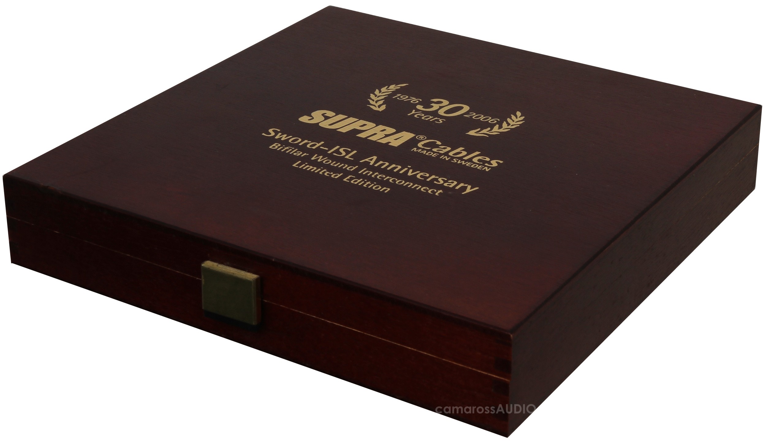 Sınırlı sayıda üretilen Supra Sword ISL sinyal kabloları özel maun ahşap saklama kutularında sunulmaktadır.